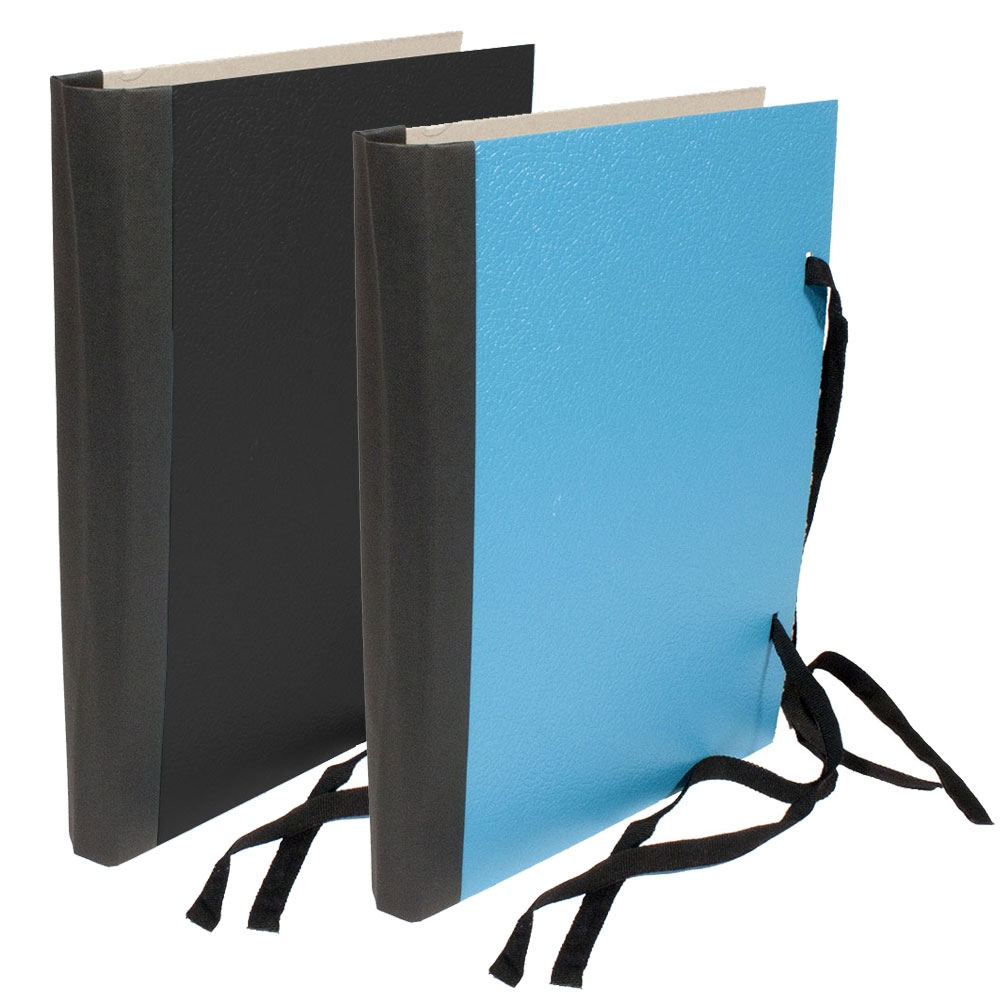 Die Aktenumschläge mit den Rücken und mit den Bändern, in der blauen oder schwarzen Farbe, aus einseitig gestrichener Karton 1,5mm hergestellt. Der Rücken ist aus dem schwarzen Leinen hergestellt.