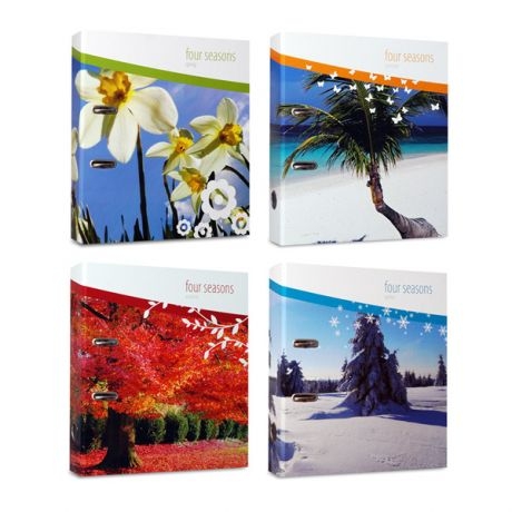 Sammlung von Ordnern Grafik-Design von vier Jahreszeiten, sehr angenehmen Farben, exklusive matte Oberfläche, Rückenbreite 7,5 cm, Hebelmechanik, Schlitzen, mit metal Kantenschutz.