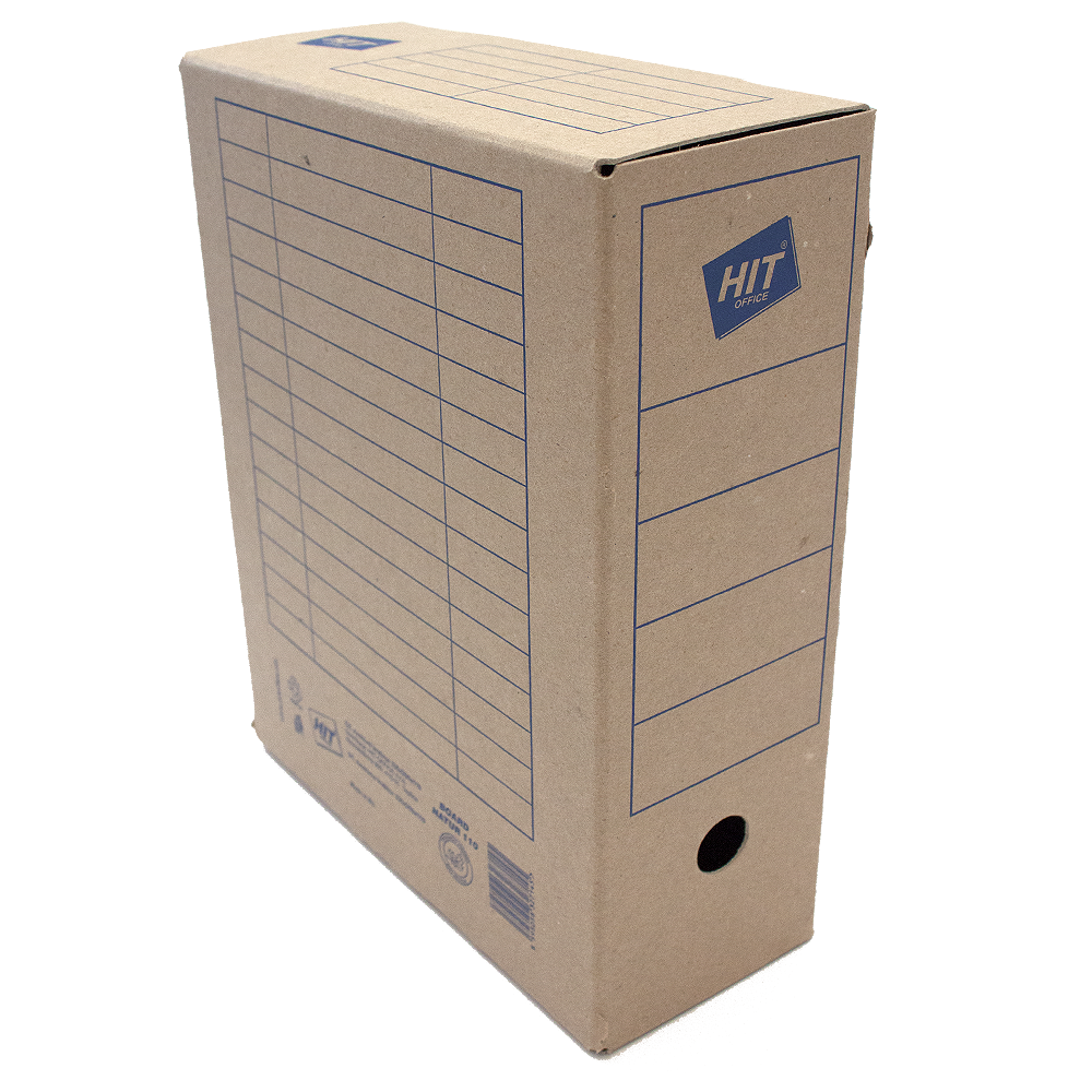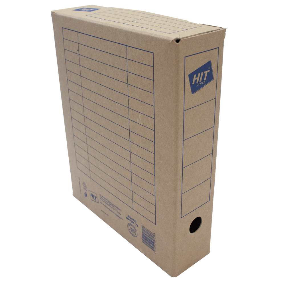 Archive Box is produced from brown machine cardboard 1,2mm with blue printing. Printed with tables for descriptions.The EAN code is printed on the back.
