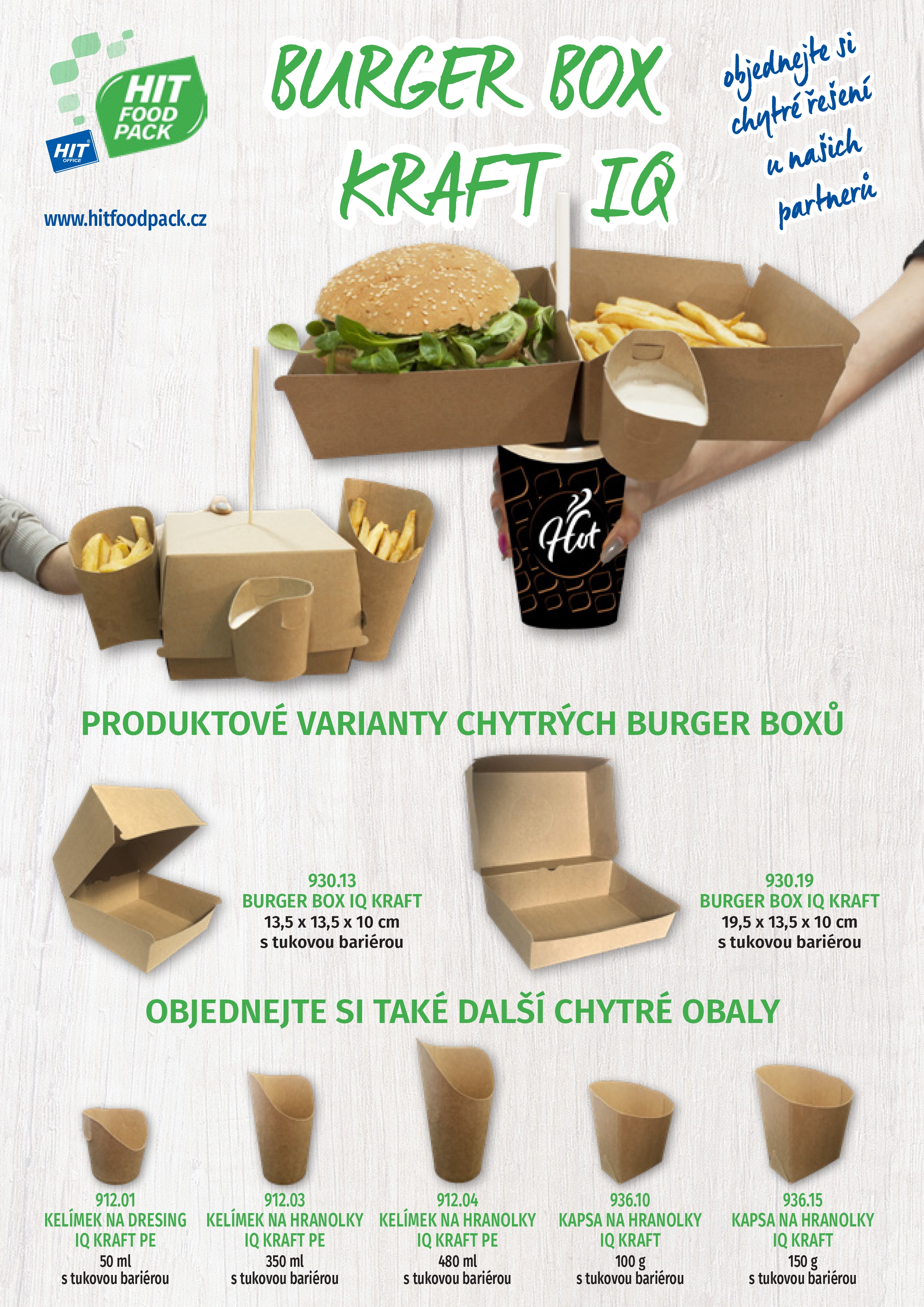 | 930.19 | BURGER BOX IQ KRAFT 19,5x13,5x10cm, fat barrier (50ks) FSC Mix | 100 pcs | 2000 pcs |