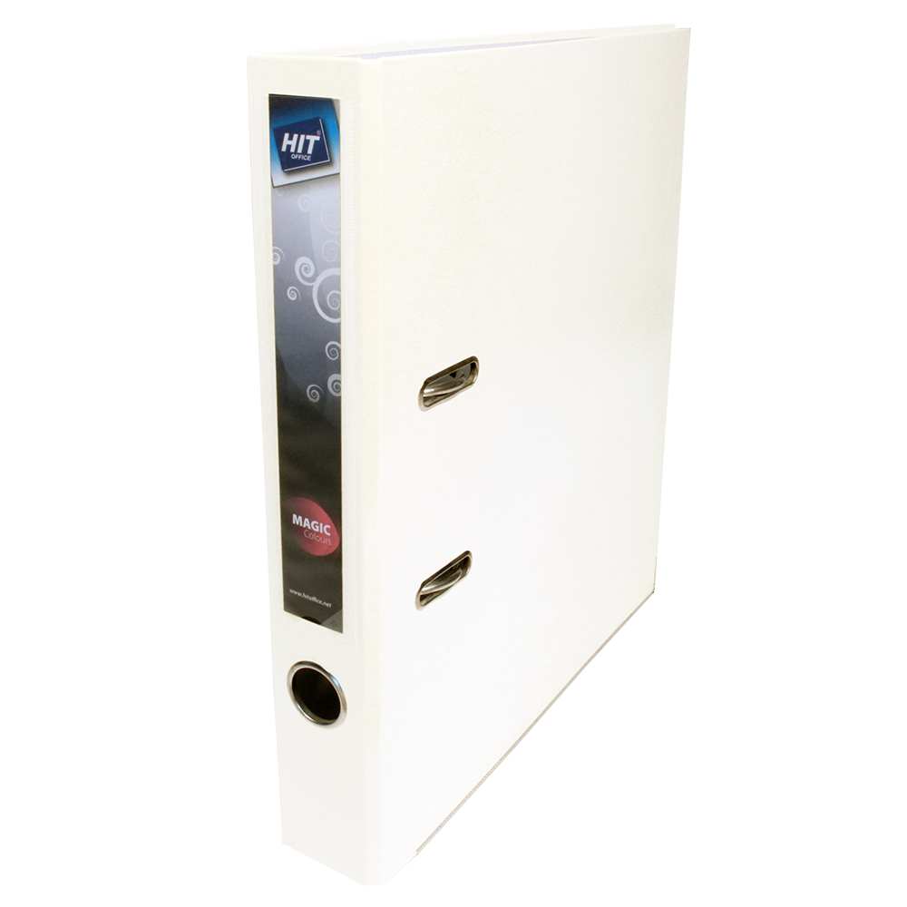 Lamino Exclusive glossy with special coating completes the modern look of the binders. Welded spine pocket with exchangeable design label. The Label is designed to compleate the Magic Colors Collection from one side and from the other side after turning it enables your personal Labels. Lever Arch Mechanism, Spine 5 cm, rado Rings and metal edges on the bottom side.