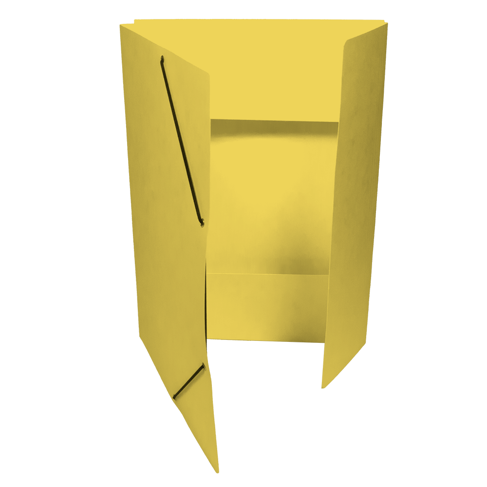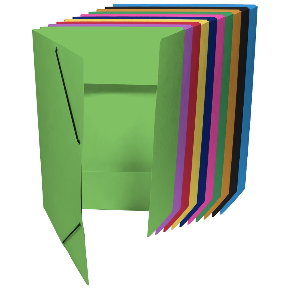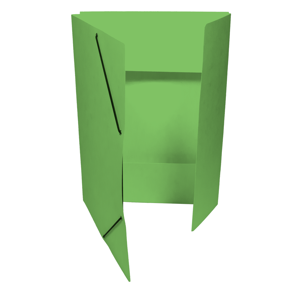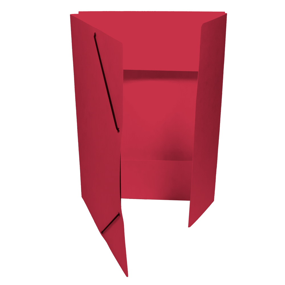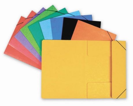 Square Cut Folder with 3 Flaps and with elastic Band, colored Pressboard 335g/m2. The EAN code is printed on the back side.
