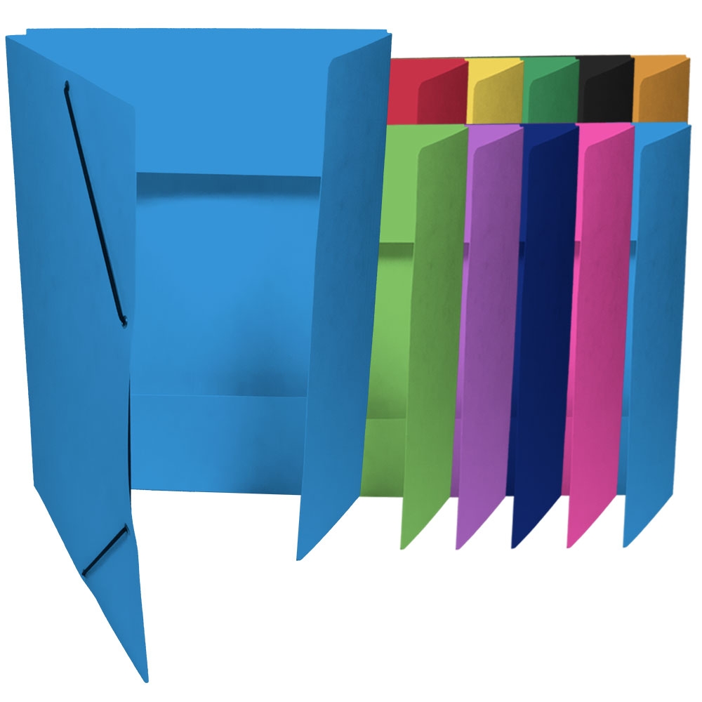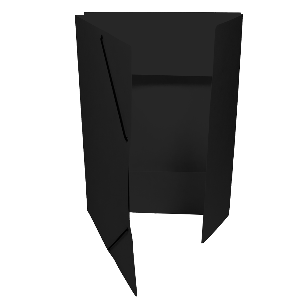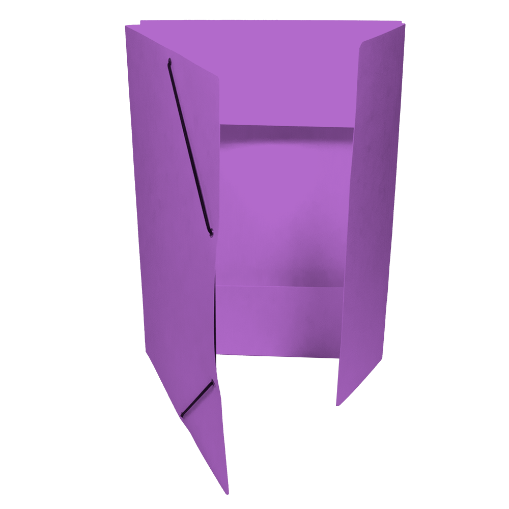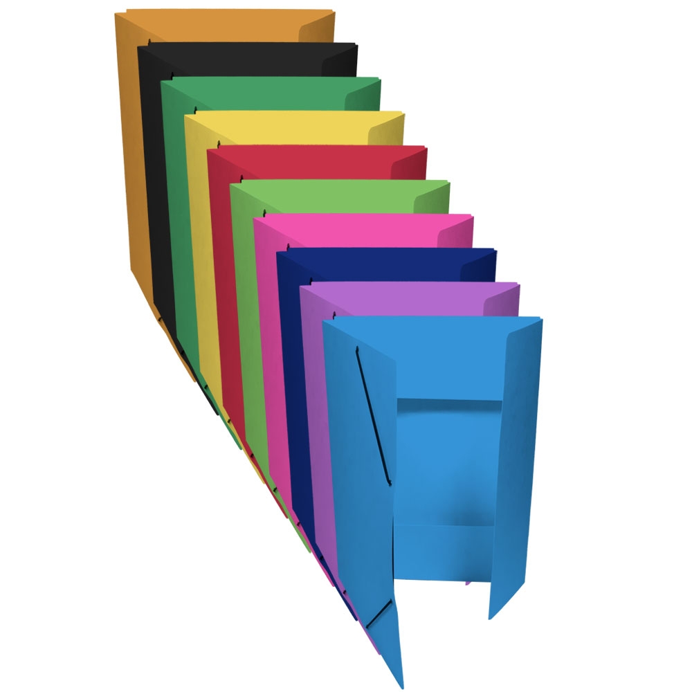 Square Cut Folder with 3 Flaps and with elastic Band, colored Pressboard 335g/m2. The EAN code is printed on the back side.