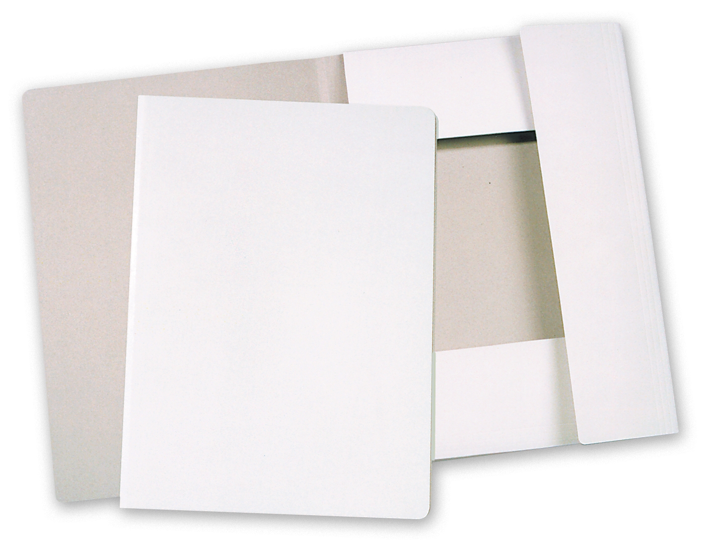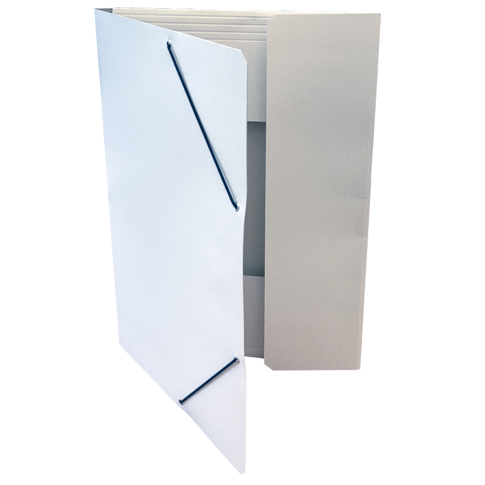 Square Cut Folder with 3 Flaps with elastic Band or without, Cardboard 350g/m2 (white- grey).